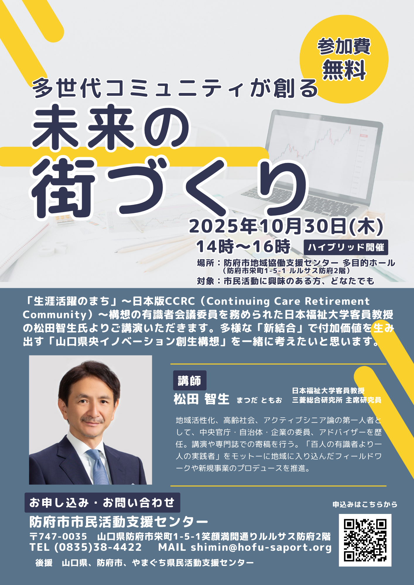 【場 所】 防府市地域協働支援センター 多目的ホール/オンライン (ハイブリッド開催)
