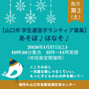 ☆【山口市 学生運営ボランティア募集】あそぼ♪はなそ♪ ※毎月第3土曜日(地域食堂開催時)