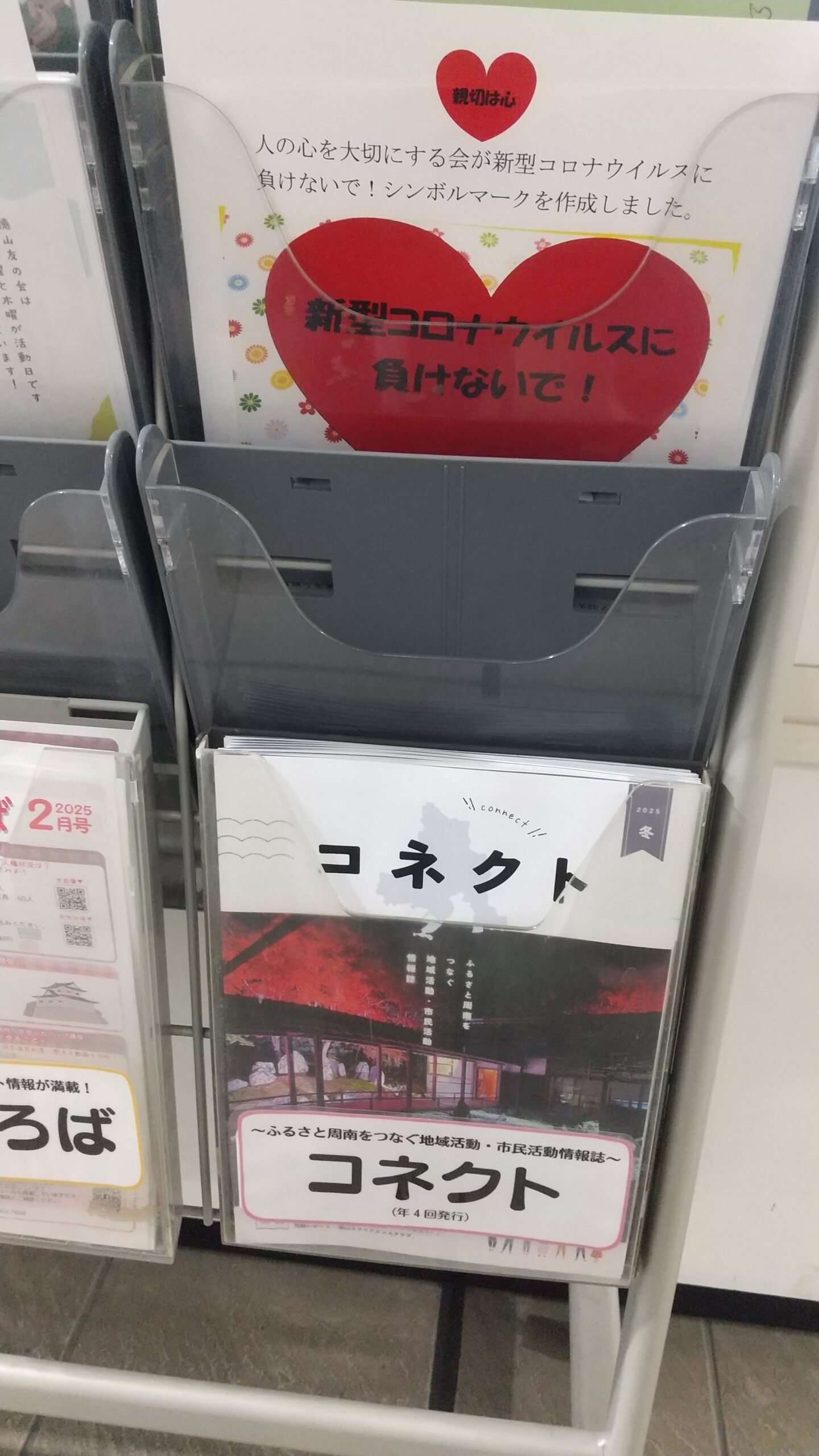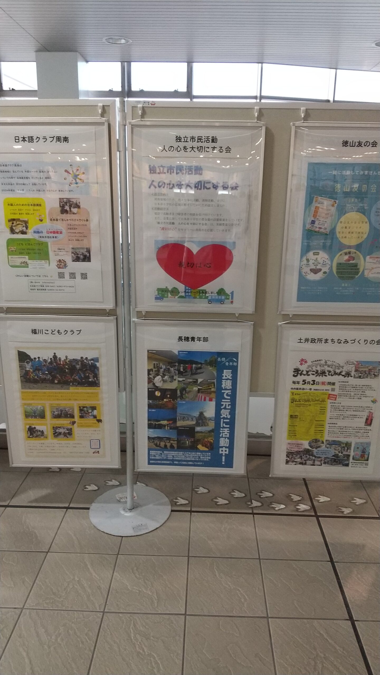 今回は、当会で作った新型コロナウイルスに負けないでのポスターを置いてもらいました。市外の方も周南市に来たらぜひよろしくお願い致します。各団体様の素晴らしい展示が見られます。