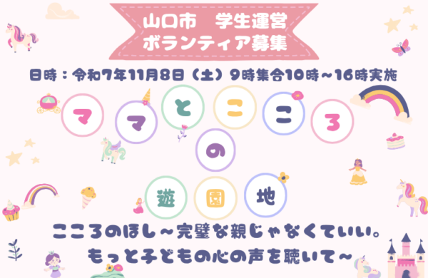 ☆【山口市 学生運営ボランティア募集】 ママのこころの遊園地(~10/25)